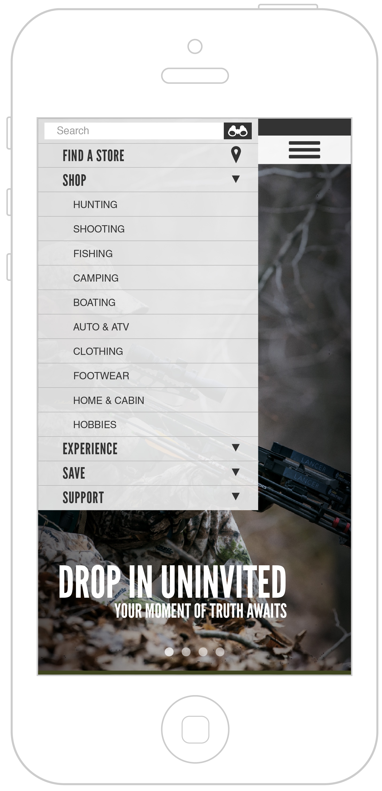 Once the initial homepage design concept was developed, collaboration between the UI and UX teams became a critical focus. Clear divisions were established, with the UX team managing functionality and my team owning the overall look and feel. Building on the wireframe concept tested by the UX team, I refined and enhanced the visual design to create a cohesive, engaging user experience that aligned with Cabela’s brand identity and strategic goals.