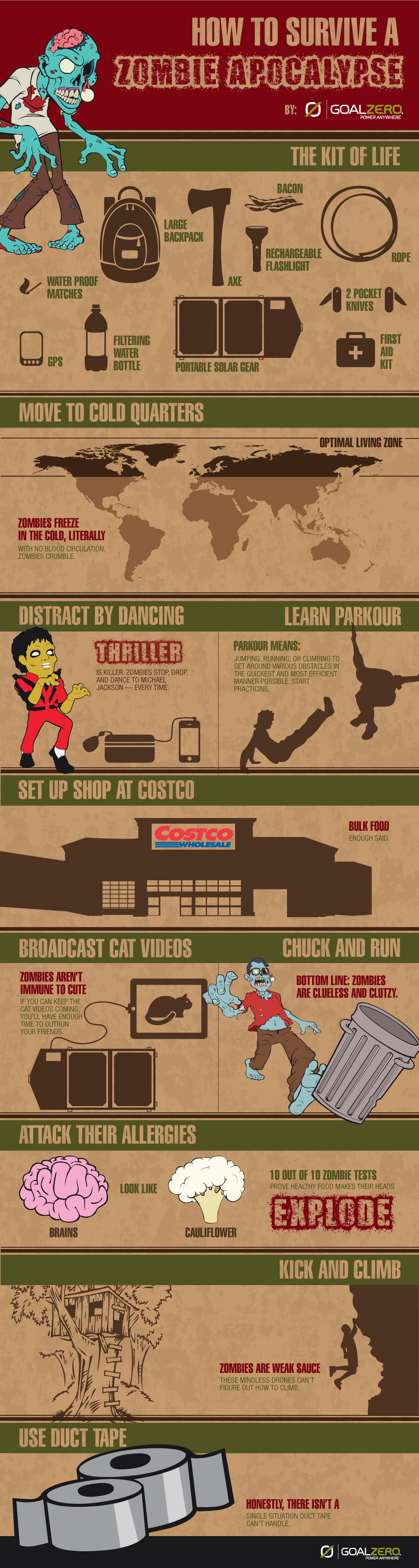 We created a captivating infographic that creatively linked Goal Zero’s solar products to survival scenarios in a zombie apocalypse. This playful, yet informative, approach positioned their products as essential for any survival kit.