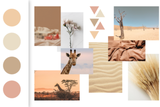 We explored visuals that combined giraffe symbolism, clean visuals, and pastel color palettes to help establish a cohesive aesthetic and align with the client’s vision. Our client chose a more colorful design with the turquoise.